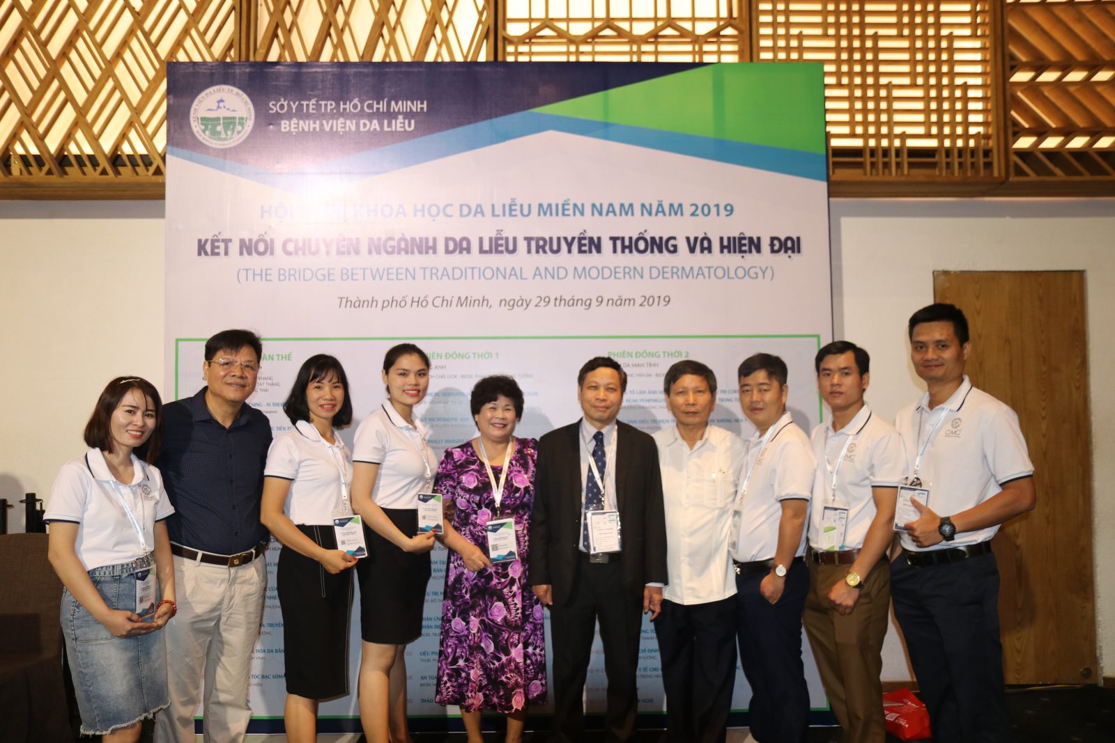 Cán bộ nhân viên Công ty TNHH Dược France chụp hình lưu niệm cùng GS.TS Trần Hậu Khang – Chủ tịch Hội Da liễu Việt Nam