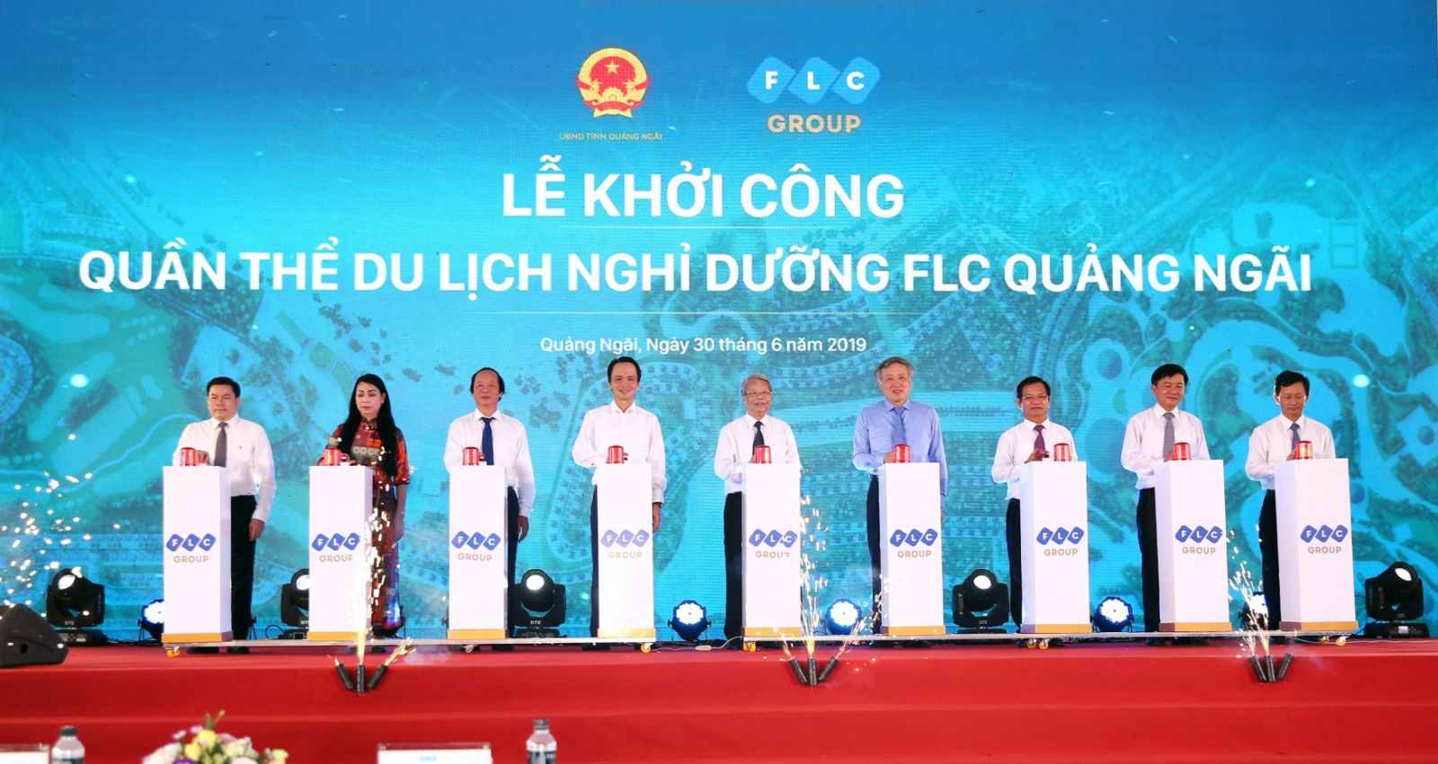 Quần thể du lịch nghỉ dưỡng FLC Quảng Ngãi vừa chính thức khởi công ngày 30/06/2019 tại huyện Bình Sơn, tỉnh Quảng Ngãi. Sự kiện do UBND tỉnh Quảng Ngãi phối hợp với Tập đoàn FLC tổ chức trong khuôn khổ chuỗi hoạt động chào mừng kỷ niệm 30 năm ngày tái lập Tỉnh (01/07/1989 - 01/07/2019).