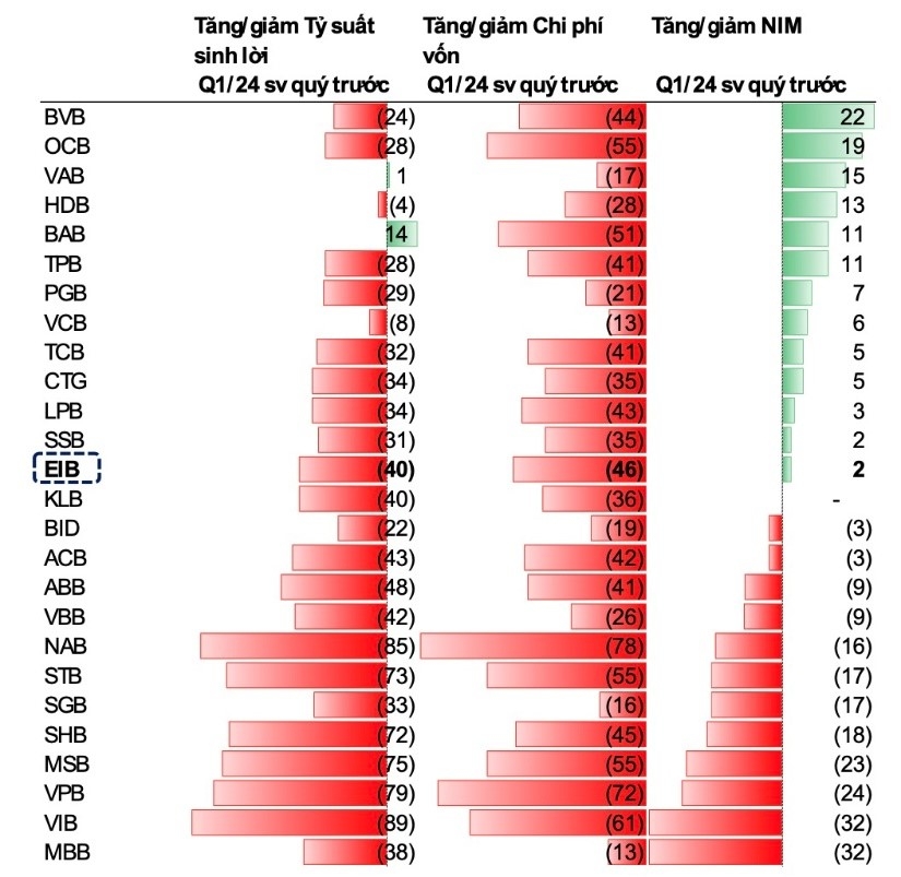 | Ngân hàng Eximbank là một trong những ngân hàng có mức độ cải thiện NIM tốt nhất so với năm 2023. Nguồn: Chứng khoán MB |