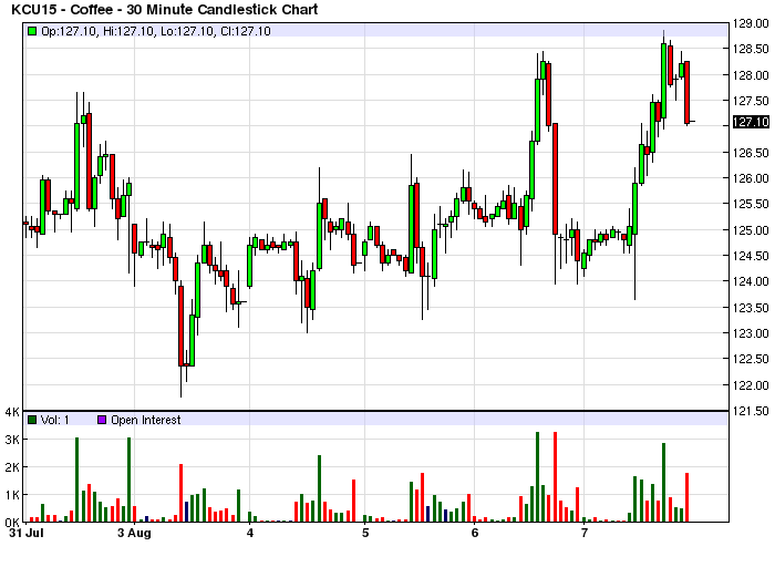 Giá cà phê Arabica giao tháng 9 tăng 3,55 cent hay 2,86%, đạt mức 127,80 cent/lb trên sàn ICE Futures US, thiết lập mức tăng giá trong một phiên lớn nhất kể từ ngày 20/7/2015. Trong khi đó, giá cà phê Robusta giao tháng 9 tăng 1,28% đạt mức 1661 USD/tấn.