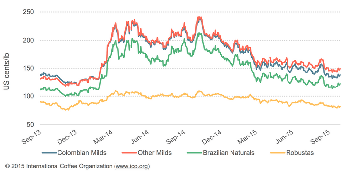 Trung tâm Dự báo Khí hậu Mỹ khẳng định 95% khả năng hiện tượng El Nino sẽ kéo dài đến giữa tháng 3 năm 2016, làm tăng kỳ vọng sản lượng cà phê tại Indonesia và Việt Nam có thể bị ảnh hưởng. Các nhà khí tượng Mỹ dự báo lượng mưa hạn chế đến ngày 22/10/2015 tại một số vùng trồng cà phê Brazil, điều này làm tăng quan ngại đối với tiềm năng sản lượng cà phê và gây sức ép lên giai đoạn cà phê ra hoa cho niên vụ 2016/17, dù vẫn có thời gian để tình hình cải thiện.