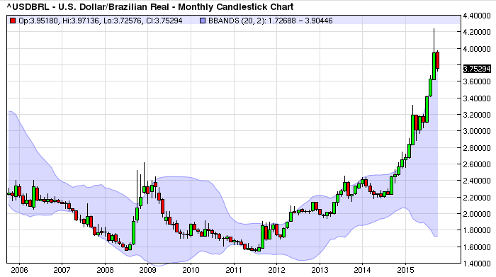 Đồng real đã phục hồi hơn 10% trong nửa đầu tháng 10/2015 - Nguồn: Barchart