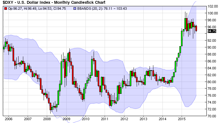 Đồng USD vẫn đang suy yếu do kỳ vọng Fed chỉ tăng lãi suất vào năm 2016 - Nguồn Barchart