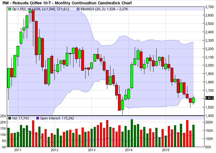 Giá cà phê khởi đầu tháng 10, cũng đồng thời là thời điểm bắt đầu niên vụ cà phê 2015/16, với đà tăng giá lạc quan. Hậu thuẫn cho sự tăng giá của cà phê là việc đồng USD suy yếu so với hầu hết các đồng tiền chủ chốt sau khi số liệu bảng lương phi nông nghiệp tháng 9 của Mỹ cho kết quả xấu hơn kỳ vọng, ngoài ra đồng real tăng giá so với đồng USD sau khi Tổng thống Brazil bà Dilma Rousseff cam kết trước nội các chính phủ rằng bà sẽ cố gắng giành lại sự ủng hộ ở Quốc hội về việc thúc đẩy ngân sách với kế hoạch xóa bỏ 8 bộ ngành và giảm 10% lương của các bộ trưởng còn lại cùng với các khoản cắt giảm chi tiêu khác.
