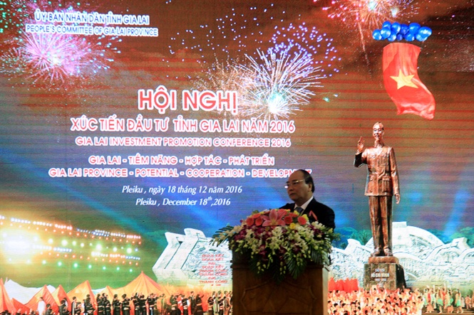 Sáng 18/12, tại TP. Pleiku (Gia Lai), Hội nghị xúc tiến đầu tư vào Gia Lai đã diễn ra với chủ đề: “Gia Lai - Tiềm Năng - Hợp tác - Phát triển". Thủ tướng Nguyễn Xuân Phúc đã về dự và chỉ đạo.