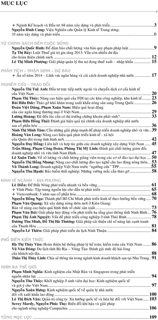 Tạp chí Kinh tế và Dự báo số 24 còn có các bài viết phân tích đánh giá về hiệu quả, cũng như giải pháp thu hút FDI, bài viết phân tích các khía cạnh về phát triển doanh nghiệp. Bên cạnh đó, chuyên mục “Kinh tế ngành - địa phương” số này là những bài viết về nhiều khía cạnh trong phát triển kinh tế của các tỉnh, như: Đắk Nông, TP. Hồ Chí Minh, Thái Bình, Ninh Bình... Chuyên mục “Nhìn ra thế giới” là nhiều bài viết chia sẻ kinh nghiệm quốc tế, như vấn đề phát triển nhân lực của Nhật Bản, Singapore; vấn đề về biến đổi khí hậu và nông nghiệp của Campuchia...