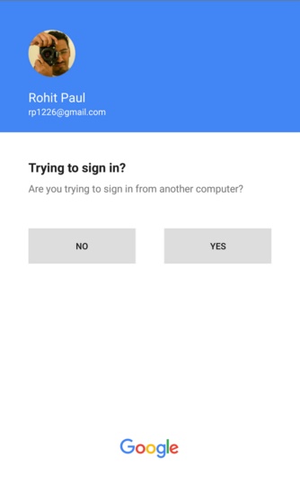 Với cách đăng nhập không cần mật khẩu mới này, Google khẳng định tốc độ đăng nhập vào tài khoản sẽ nhanh hơn nhiều. Cụ thể, khi muốn đăng nhập vào tài khoản Google, người dùng chỉ cần nhập địa chỉ email. Sau đó, một thông báo sẽ xuất hiện trên smartphone yêu cầu xác nhận nếu người dùng đăng nhập từ một thiết bị khác. Để xác nhận việc đăng nhập, người dùng chỉ cần nhấn vào “Yes” và tài khoản Google của người dùng sẽ lập tức được truy cập.