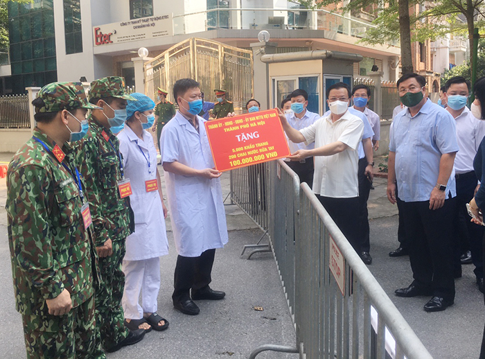 Lãnh đạo Thành ủy Hà Nội trao quà hỗ trợ lực lượng làm nhiệm vụ tại khu cách ly tập trung Pháp Vân - Tứ Hiệp