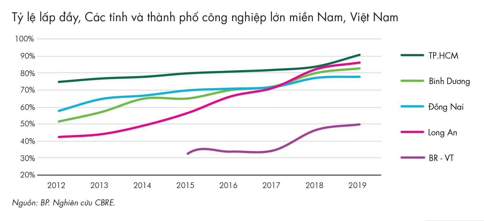 “Sự phát triển nguồn cung đất công nghiệp sẽ dịch chuyển về các tỉnh, thành phố công nghiệp cấp 2 nhờ vào mức giá thuê cạnh tranh hơn cùng với tỷ lệ lấp đầy còn thấp. Tuy nhiên, nhu cầu bất động sản công nghiệp trong ngắn hạn tại các khu vực này vẫn thấp do cơ sở hạ tầng còn yếu kém. Đồng thời, nguồn cung mới dự đoán sẽ đi vào hoạt động trong tương lai sẽ hạn chế sự tăng trưởng mạnh của giá thuê trung bình. Những khu công nghiệp có kết nối tốt với các cụm cảng biển quan trọng sẽ có tỷ lệ lắp đầy tăng nhanh chóng”, CBRE cho biết.