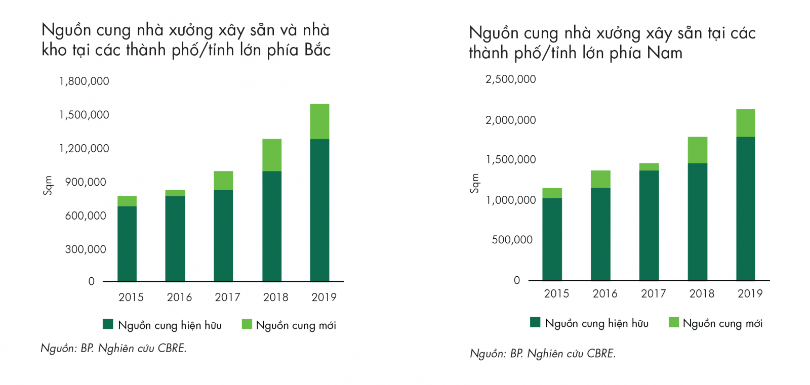 Về nguồn cầu của thị trường bất động sản công nghiệp, CBRE Việt Nam cho rằng, những nỗ lực xoa dịu căng thẳng thương mại và các chính sách ngăn ngừa thuế quan có thể làm suy yếu nguồn cầu, đặc biệt từ Trung Quốc đại lục, Đài Loan, Hàn Quốc và Hồng Kông trong ngắn hạn. Những lợi ích từ các hiệp định thương mại mới là động lực bền vững hơn cho nhu cầu của thị trường. Trong bối cảnh nguồn cầu tăng từ các doanh nghiệp trong ngành công nghiệp chế biến, chế tạo, loại hình bất động sản công nghiệp xây sẵn đang nhận được phản ứng khá tốt từ thị trường.