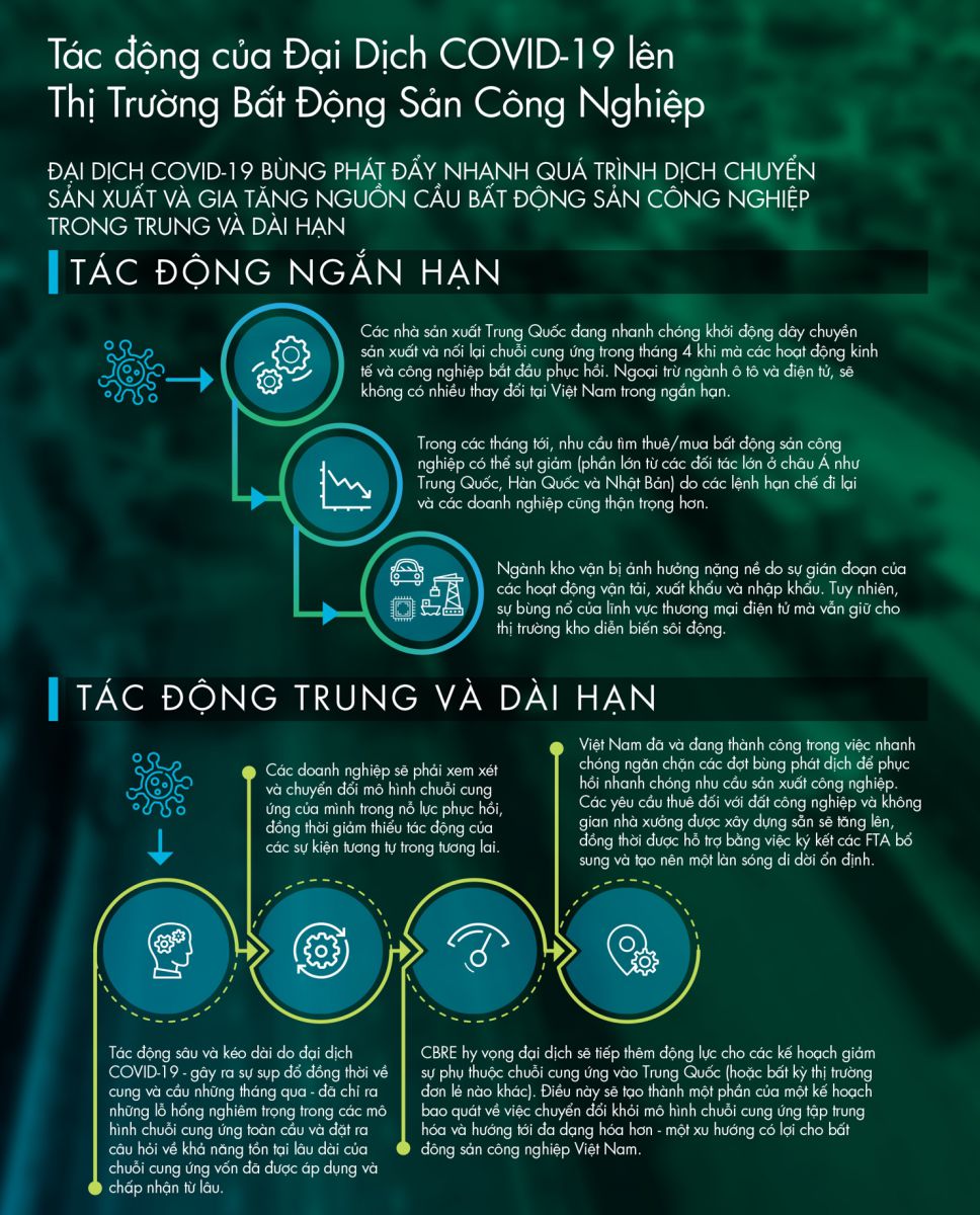 “Việt Nam đang đứng trước cơ hội lớn nhất để trở thành một trung tâm sản xuất mới của thế giới. Hoạt động sản xuất sẽ tiếp tục xu hướng chuyển dịch ra khỏi Trung Quốc do chi phí tăng; xung đột thương mại với Hoa Kỳ; và chiến lược của các nhà sản xuất nhằm giảm thiểu sự phụ thuộc vào một thị trường duy nhất, đặc biệt là sau COVID-19”, CBRE cho biết.