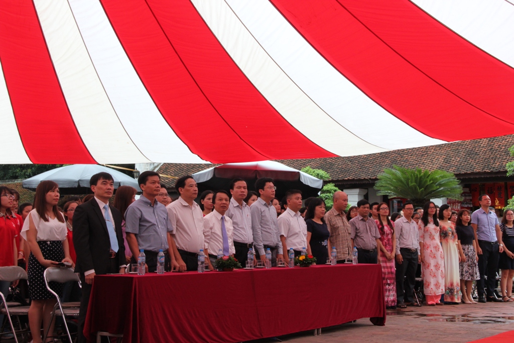 Đại biểu và các thầy, cô giáo của Học viện Chính sách và Phát triển chào cờ