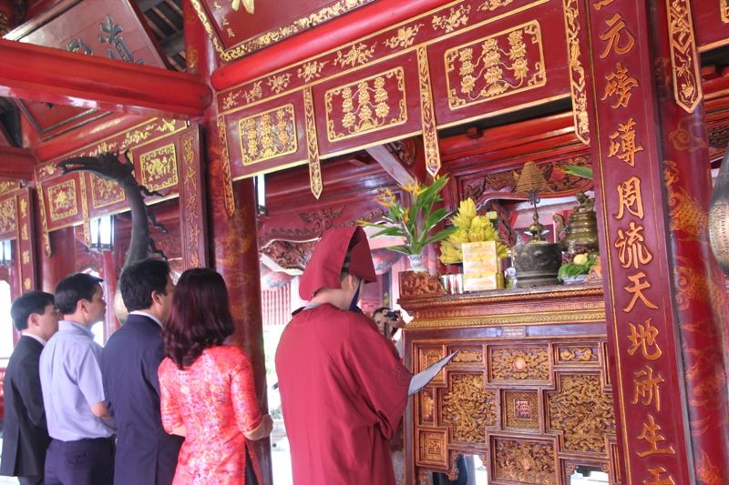 Đại biểu, thầy cô, tân sinh viên, học viên của Học viện Chính sách và Phát triển dâng hương