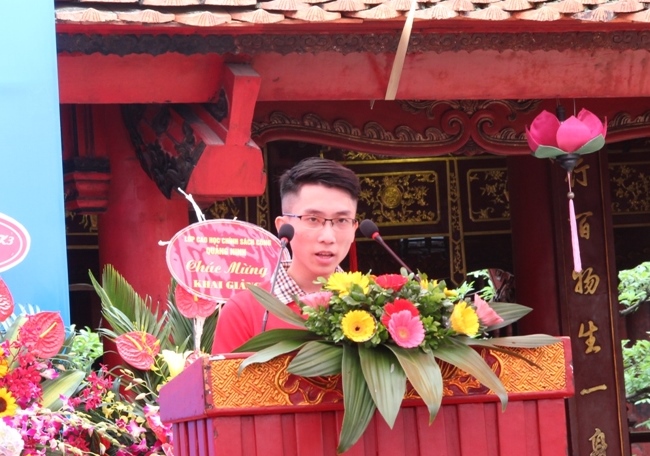 Đại diện tân sinh viên Khóa 8 phát biểu trong buổi lễ khai giảng