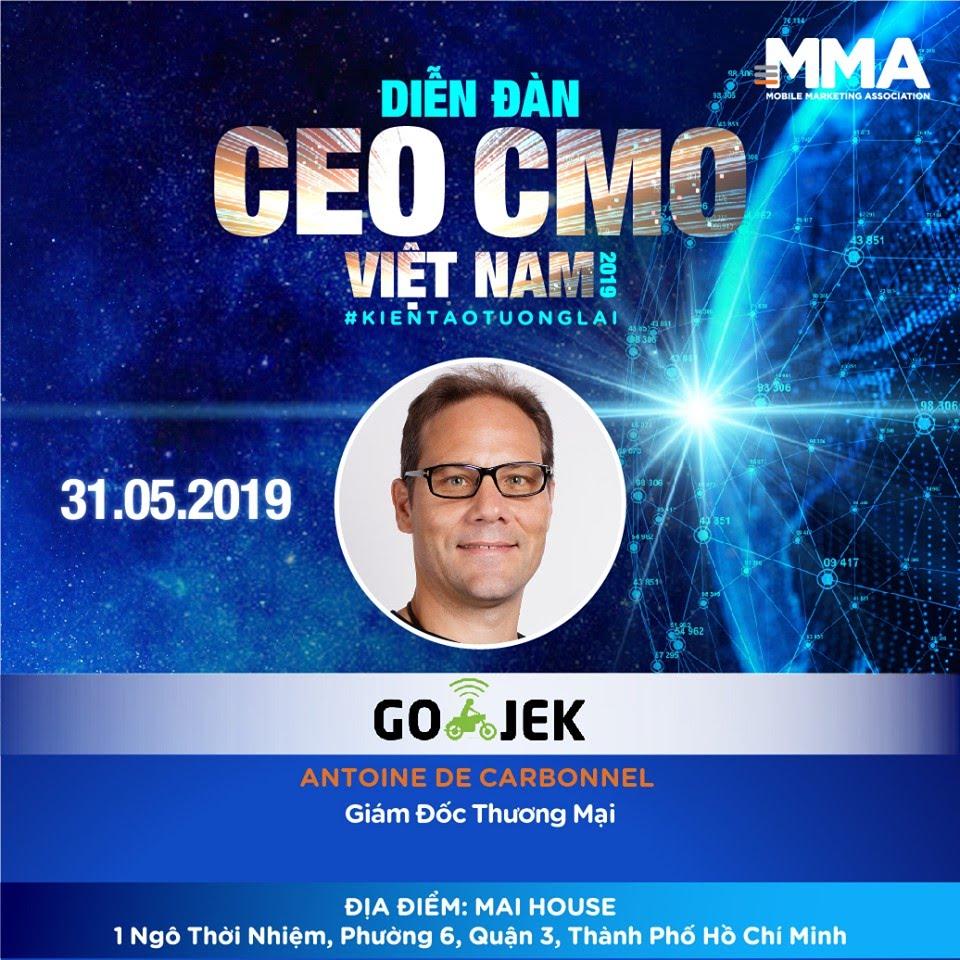 Ông Antoine De Carbonnel – Chief Commercial Officer Go Jek sẽ tham gia chia sẻ tại Hội nghị CEO – CMO 2019