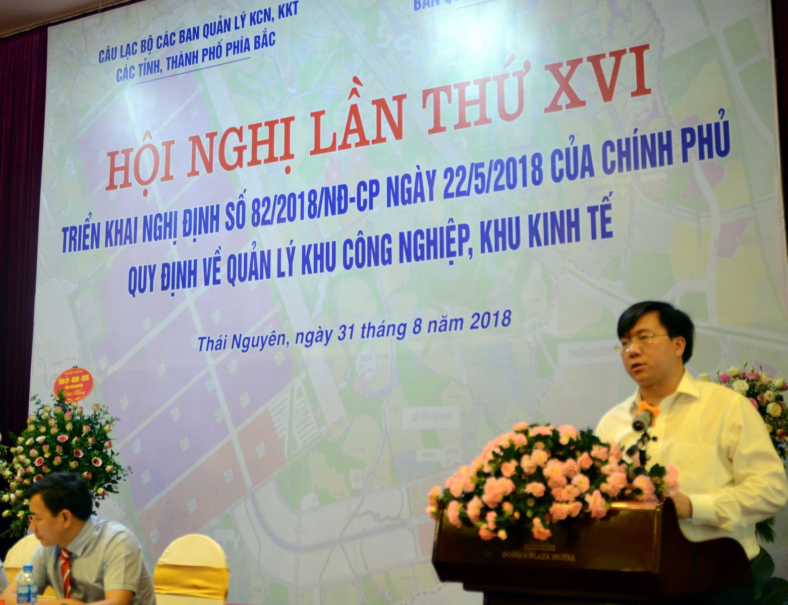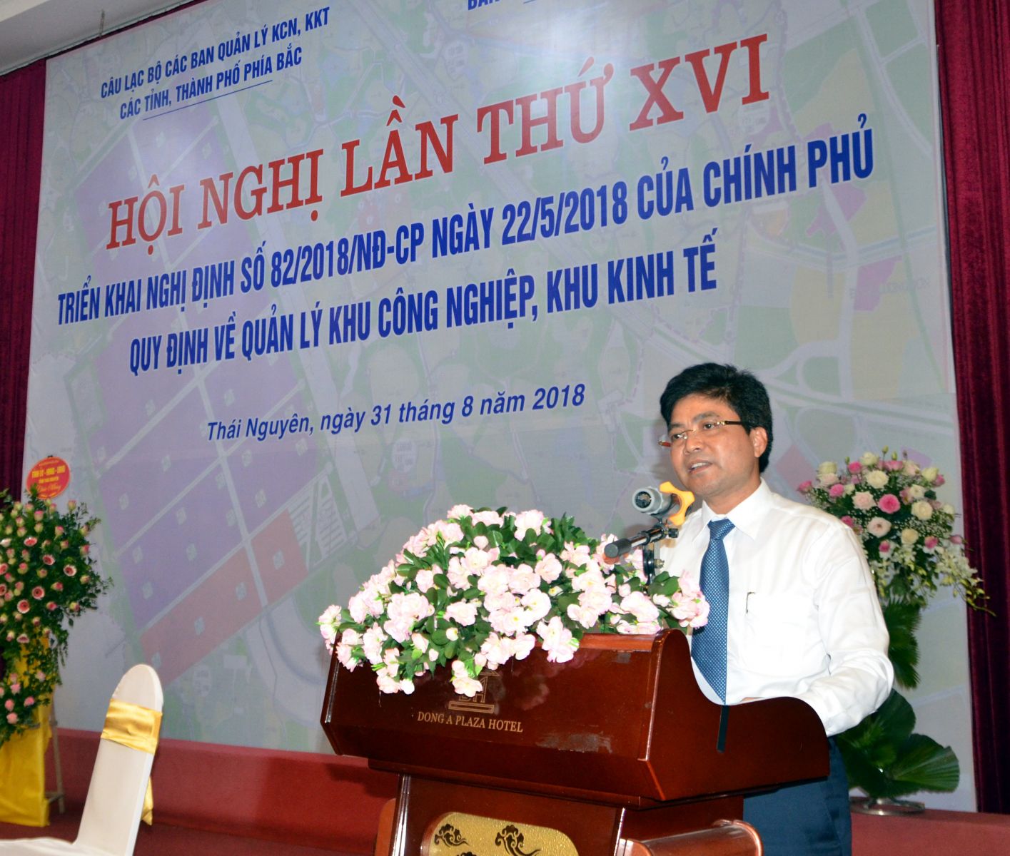 Thay mặt cho lãnh đạo UBND tỉnh Thái Nguyên, ông Nhữ Văn Tâm - Ủy viên BTV Tỉnh ủy, Phó Chủ tịch Thường trực UBND tỉnh Thái Nguyên chúc mừng, đánh giá cao những đóng góp tích cực, hiệu quả vào quá trình phát triển kinh tế - xã hội của đất nước mà Ban Quản lý các KCN, KKT các tỉnh phía Bắc đã đạt được trong thời gian qua. Ông Tâm nhấn mạnh: Thái Nguyên luôn đánh giá cao vai trò của các KCN trong sự nghiệp phát triển kinh tế - xã hội, bảo đảm an sinh xã hội trên địa bàn. Tỉnh đã ban hành nhiều cơ chế, chính sách thu hút tối đa các nguồn lực tạo điều kiện phát triển KCN như: đồng ý cho Ban Quản lý các KCN được vận động sử dụng tiền ứng trước của các nhà đầu tư thứ cấp để thực hiện công tác GPMB; tạm ứng ngân sách tỉnh để thực hiện GPMB tạo quỹ đất sạch thu hút đầu tư; định kỳ hàng tháng Thường trực Tỉnh ủy, Ban Thường vụ Tỉnh ủy sẽ nghe, thảo luận về tình hình thu hút đầu tư, phát triển các KCN trên địa bàn; tạo điều kiện cho Ban Quản lý các KCN thực hiện công tác xúc tiến đầu tư tại một số nước có tiềm năng: Hàn Quốc, Nhật Bản...Với sự chỉ đạo quyết liệt của lãnh đạo tỉnh, đến nay các KCN trên địa bàn tỉnh Thái Nguyên đã đạt được những tựu nổi bật như: Thu hút được 90 dự án FDI/tổng số 130 dự án FDI toàn tỉnh; giá trị sản xuất công nghiệp chiếm trên 90% toàn tỉnh; giá trị xuất khẩu chiếm 99% toàn tỉnh; lực lượng lao động trong lĩnh vực công nghiệp chiếm trên 60%; thu ngân sách chiếm gần 50%...