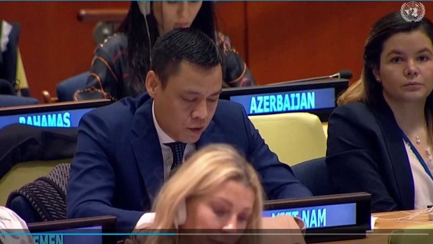 | Đại sứ Đặng Hoàng Giang, Trưởng Phái đoàn Thường trực Việt Nam tại Liên hợp quốc phát biểu tại cuộc họp |