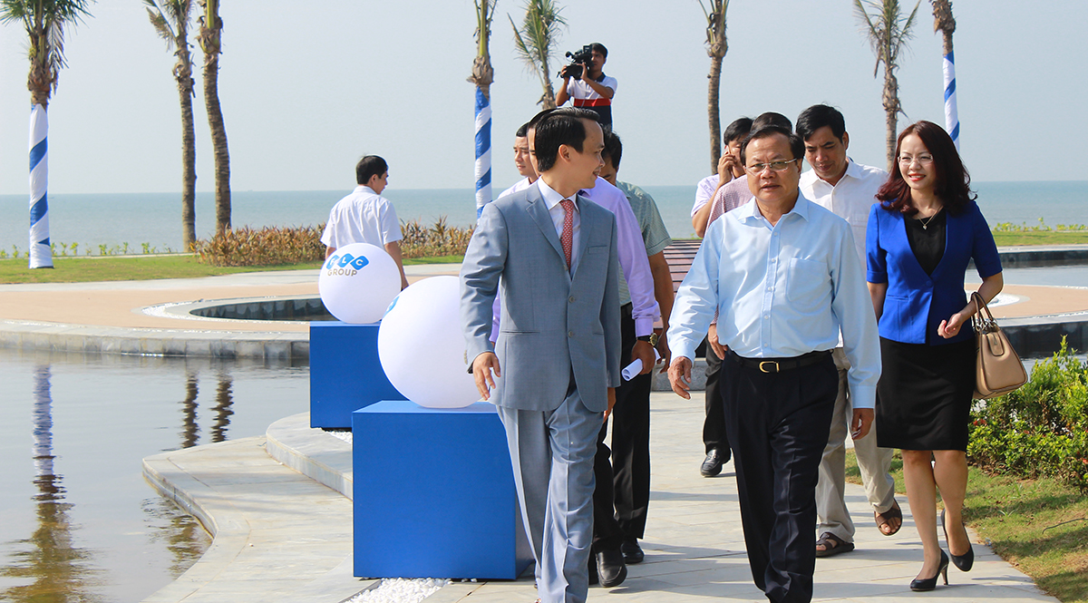 Ông Trịnh Văn Quyết dẫn ông Phạm Quang Nghị đi thăm quần thể du lịch nghỉ dưỡng FLC Sầm Sơn.