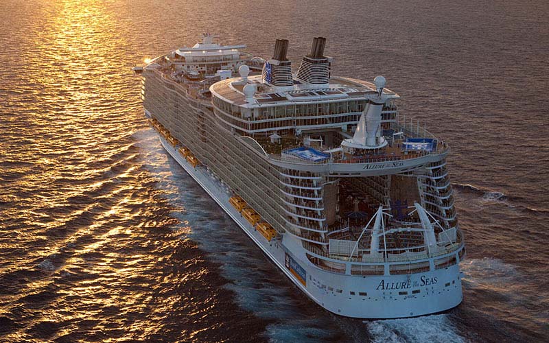 Với sức chứa 7.500 hành khách và 2.500 nhân viên. Tàu được thiết kế như 2 tòa nhà nối liền nhau. Có sân golf mini với nhiều màu sắc, khu vực chơi bóng bàn, có 2 khu vực dành cho người chơi lướt sóng. Ở giữa hai tòa nhà có một vòng đu ngựa, một quán bar và một rạp chiếu phim ngoài trời với màn hình khổng lồ. Boong tầng 5 là nơi sơ tán khi gặp sự cố. Trên tàu có nhiều phòng hội nghị cỡ khác nhau dành cho các hành khách doanh nhân. Tàu có khu vực chăm sóc sắc đẹp, phòng tập gym, bãi đáp trực thăng, phòng đọc sách. Hành khách còn được phục vụ văn nghệ mỗi đêm tại nhà hát chính của tàu…Tàu du lịch Allure of the Seas sẽ đưa bạn khám phá những hành trình xuyên các quốc gia Pháp, Ý, Tây Ban Nha