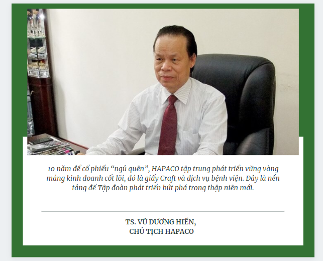 “10 năm đầu hoạt động của TTCK, đi đến đâu dân chứng khoán cũng biết về HAPACO, quý HAPACO”, TS. Vũ Dương Hiền nhớ lại. Sang năm 2011, HAPACO tái cấu trúc, chuyển hoạt động theo mô hình Tập đoàn, tập trung vào một số ngành nghề chuyên môn nên “đã để lãng quên hình ảnh tiên phong của chính mình trên sàn chứng khoán Việt”, ông Hiền tâm sự.
