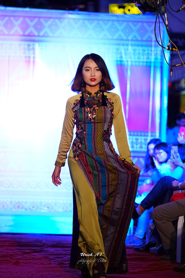 Như đã hẹn, bắt đầu từ 31/3 này, vào mỗi tối Chủ nhật cuối tuần mỗi tháng, tại Chương Trình Thời Trang Phố của đạo diễn Đỗ Kim Khánh trên phố đi bộ Bùi Viện, NTK Việt Hùng sẽ cho ra mắt 2 bộ sưu tập với 50 bộ áo dài thổ cẩm mới. Được đính kết bằng bàn tay thủ công khéo léo và trang trọng trên cổ áo, ngực áo, tay áo là những hạt đá quý đến từ thương hiệu Đá quý Đức Tiến, càng làm tăng thêm giá trị cho chiếc áo.