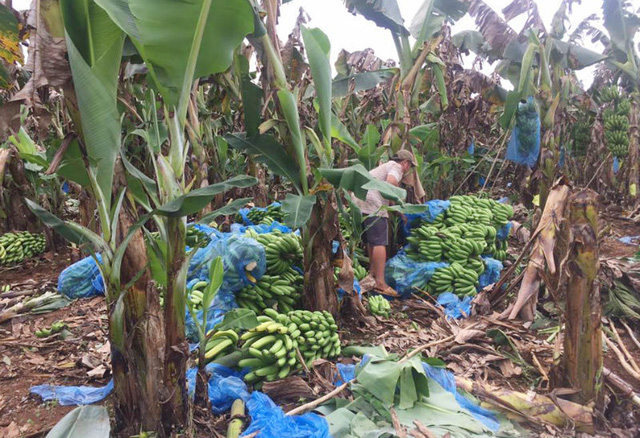 Nông dân chặt hết vườn chuối xanh đem bán cho thương lái Trung Quốc