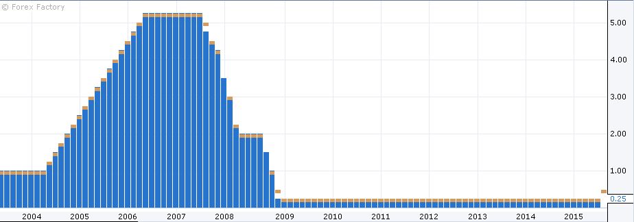 Lãi suất cơ bản của Fed từ 2004 đến nay – Nguồn : Forexfactory