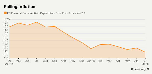 Các nhà hoạch định chính sách của Fed hồi tháng 6 dự báo rằng PCE sẽ leo lên mức mục tiêu vào cuối năm tới do tác động tiêu cực của đồng USD mạnh và giá dầu thấp sẽ giảm bớt đi. Tuy nhiên, biên bản cuộc họp tháng 7 lại dự đoán lạm phát sẽ vẫn tiếp tục ở dưới mức mục tiêu 2% trong giai đoạn 2016 - 2017.