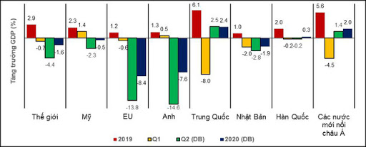 Báo cáo triển vọng kinh tế toàn cầu của WB dự báo, trong năm nay, nền kinh tế thế giới suy giảm nghiêm trọng, ở mức 5,2%. Ngân hàng Phát triển châu Á (ADB) nhận định, thiệt hại có thể ở mức từ 5.800 tỷ đến 8.800 tỷ USD, tương đương 6,4% tới 9,7% GDP toàn cầu. Dự báo mới nhất của Quỹ Tiền tệ quốc tế (IMF) cũng cho rằng, GDP toàn cầu sẽ giảm 4,9% trong năm nay và kinh tế thế giới sẽ thiệt hại 12 nghìn tỷ USD tính đến hết năm 2021. Đây là “cảnh báo đỏ” với tất cả các nước, các khu vực.