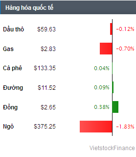 Giá cả một số hàng hóa khi kết thúc phiên giao dịch ngày thứ Năm