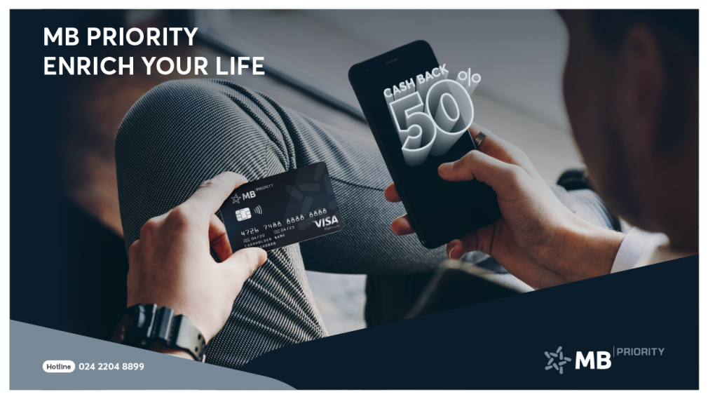 “Làm giàu cuộc sống cho bạn - Enrich Your Life” chính là cam kết của MB Priority. Dựa trên sự kết hợp từ chuyển giao quốc tế, hệ sinh thái đa dạng của MB Group, bên cạnh các sản phẩm, dịch vụ tiện ích dành cho các khách hàng thông thường, khách hàng MB Priority sẽ được trải nghiệm những dịch vụ khác biệt, như: tận hưởng không gian thiết kế riêng, dịch vụ chăm sóc chuyên nghiệp xứng tầm đẳng cấp, thời gian xử lý nhanh, linh hoạt và hiệu quả…