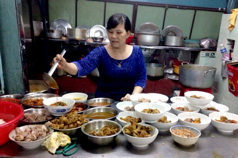 Bà chủ quán Trần Thị Hoàng Liên tự tay chuẩn bị món mì Quảng thơm ngon cho khách