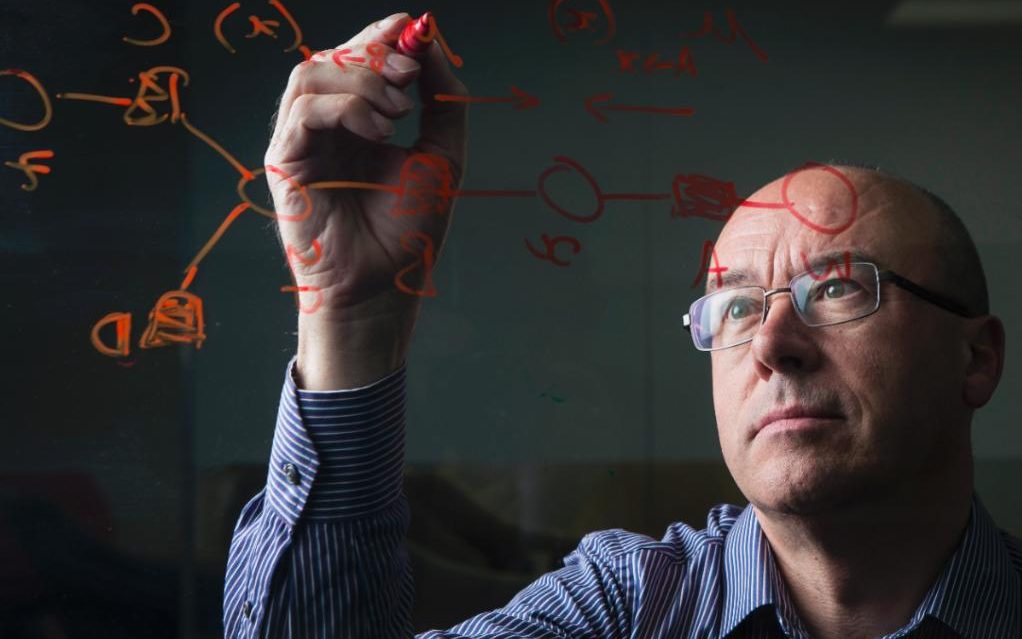 Chris Bishop, giám đốc phòng thí nghiệm tại Microsoft Research, cho biết sinh học và máy tính có kết nối rất sâu vào mức độ cơ bản nhất. (Ảnh: ED MILLER)