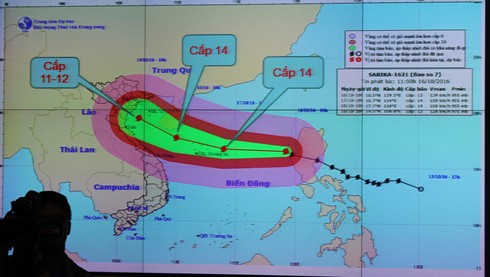 Theo Ban chỉ đạo Trung ương về phòng chống thiên tai, bão số 7 đã đi vào biển Đông nước ta. Cơn bão số 7 với tên gọi quốc tế là Sarika, đang mạnh dần lên cấp 14, giật cấp 16-17 và di chuyển rất nhanh theo hướng tây tây bắc với vận tốc 20-25 km/giờ.