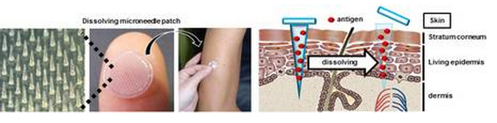 Các loại vắc- xin được đưa vào cơ thể đơn giản bằng cách đặt một miếng dán vào ngón tay của người nhận và miếng dán sẽ tan ra, các loại vắc- xin sẽ thẩm thấu vào da của họ. Như vậy là có thể giảm nguy cơ lây lan bệnh do dùng kim tiêm và với cách này vắc- xin được đưa vào cơ thể nhiều hơn, hiệu quả hơn và giá thành lại cực rẻ.