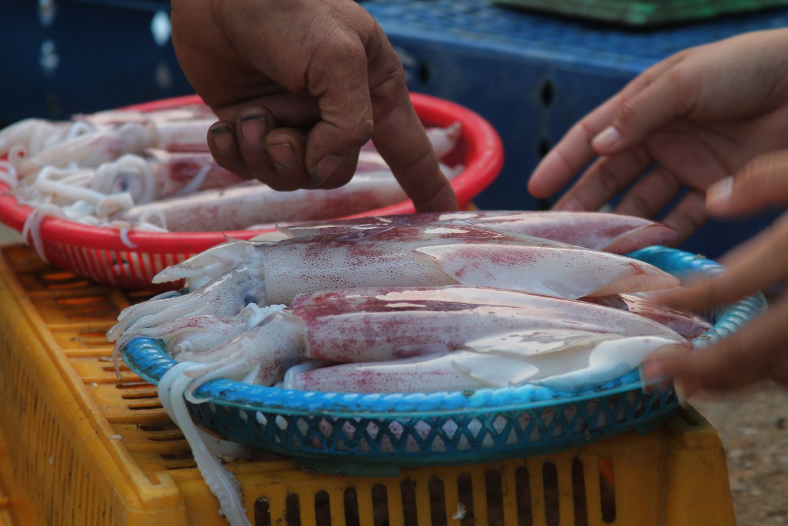 Sáng sớm khi những làn sương còn lơ lững trong không khí, cũng là lúc những chiếc thuyền câu, thuyền đánh cá, chèo thúng… tấp nập cập bờ để kịp cung cấp những món quà tươi từ biển cả.