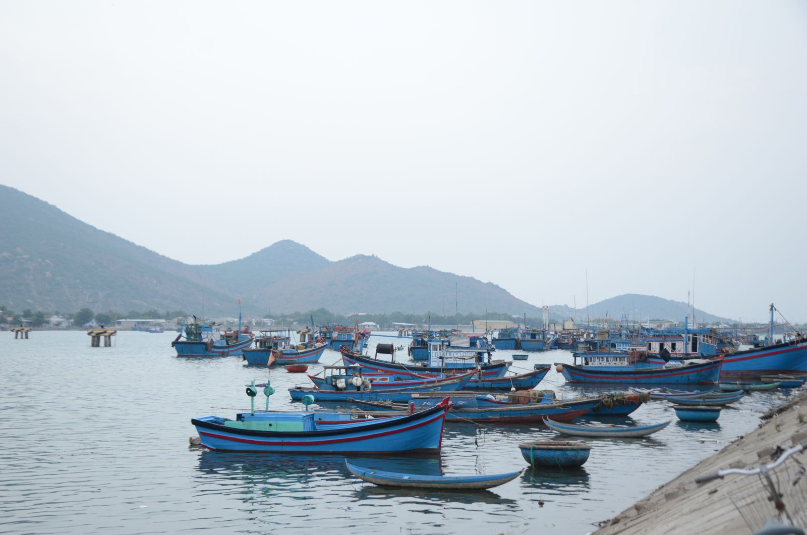 Tàu thuyền tấp nấp cấp bến. khung cảnh nhôn nhịp hiện lên sinh động và gần gủi với người dân lao động làng chài.