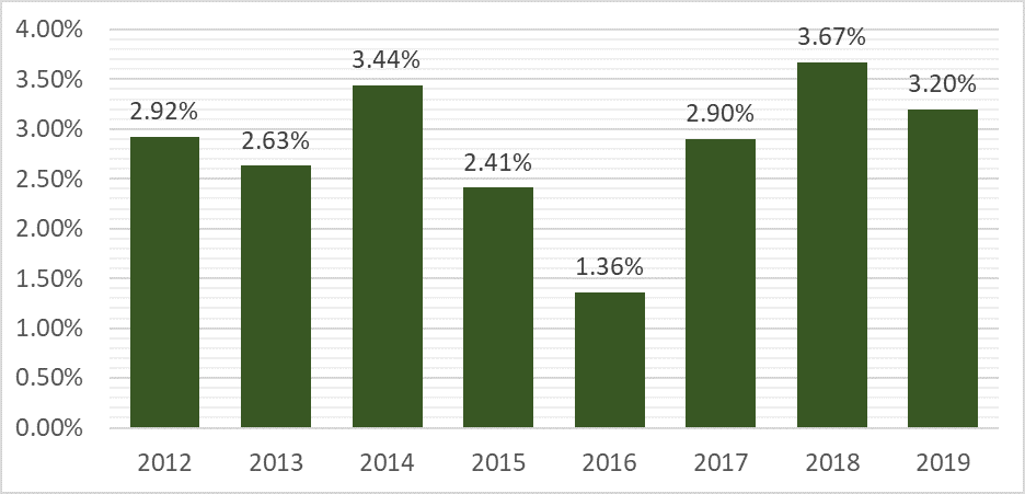 | 2019 | 38.019,11 | 99,32 | 0,26 |