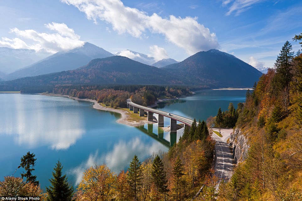 Ngắm các núi lửa phản chiếu trên mặt hồ thu trong vắt Sylvenstein ở Bavaria, Đức, khi lái xe qua Sylvensteinsee là một điều chắc chắn bạn sẽ không muốn bỏ lỡ.