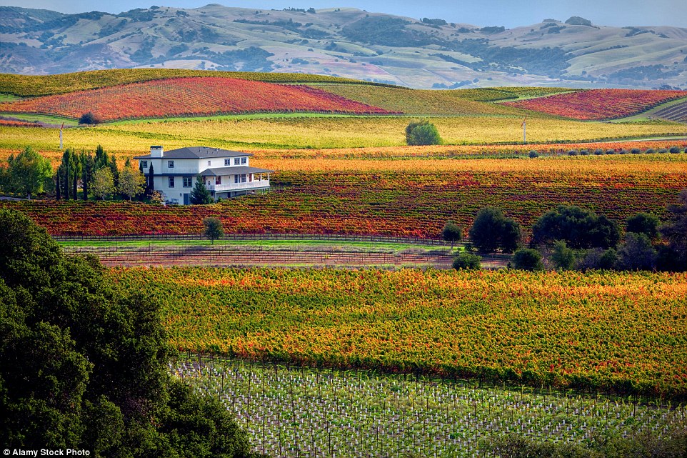 Hàng hàng nho thơm đầy màu sắc có thể thấy trong vườn nho Napa Valley ở California.
