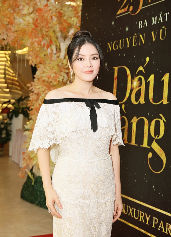 Lý Nhã Kỳ diện đầm trễ vai, phối ít phụ kiện với bông tai chuỗi hạt và nhẫn tại sự kiện Dấu Ấn Vàng Son
