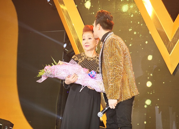 Điểm nhấn đặc biệt gây xúc động nhất cho dạ tiệc chính là lúc ca sĩ Nguyên Vũ mời mẹ mình lên sân khấu để bày tỏ sự biết ơn sâu xa đấng sinh thành của mình. Tuy đã ngoài 70, nhưng trông bà vẫn khỏe và rất “đẹp lão”. Nguyên Vũ còn kể lại hơn 25 năm trước, anh từng cãi lời mẹ, dấu quần áo vào cặp để lén đi hát.