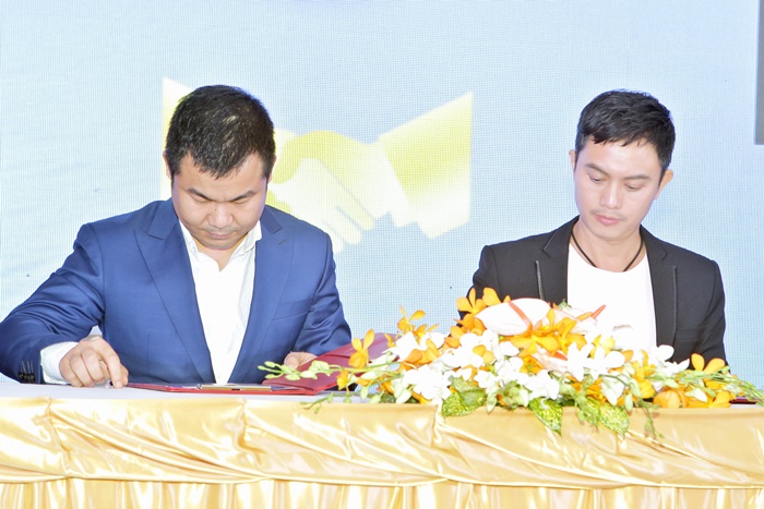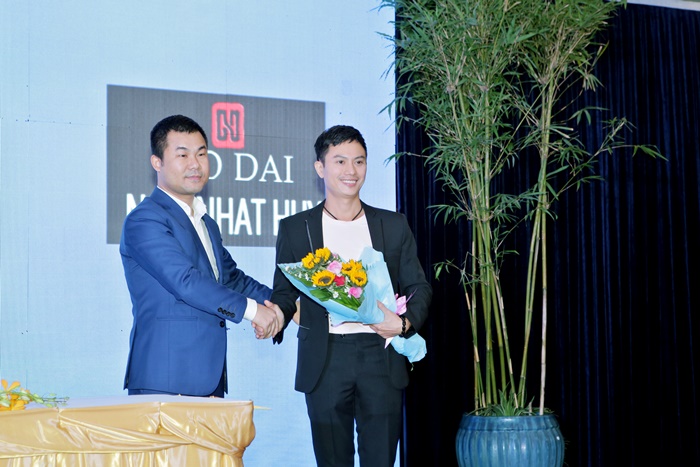 Nhà thiết kế Ngô Nhật Huy trong buổi ký kết giao ước tài trợ áo dài.