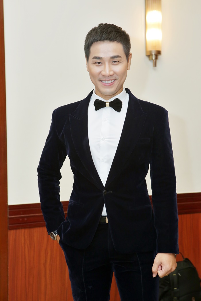 Nguyên Khang lịch lãm với vest làm người dẫn chương suốt buổi giao lưu tại buổi lễ
