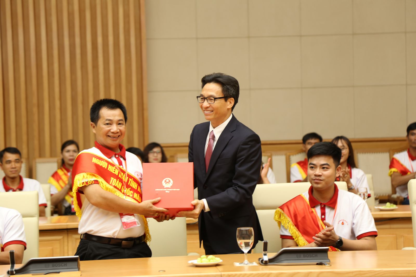 Anh Hiếu là một trong 100 người hiến máu tiêu biểu trong Lễ tôn vinh Người hiến máu tiêu biểu toàn quốc năm 2019 tại Hà Nội