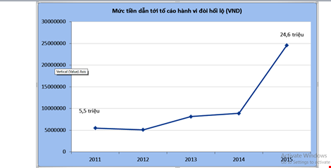 Ngoài ra, mức độ chịu đựng sự vòi vĩnh, nạn đòi hối lộ của người trả lời trên toàn quốc lớn hơn rất nhiều so với những năm trước: Người bị vòi vĩnh sẽ không tố giác hành vi đòi hối lộ, nếu số tiền bị vòi vĩnh chưa lên tới khoảng 24,6 triệu VNĐ.