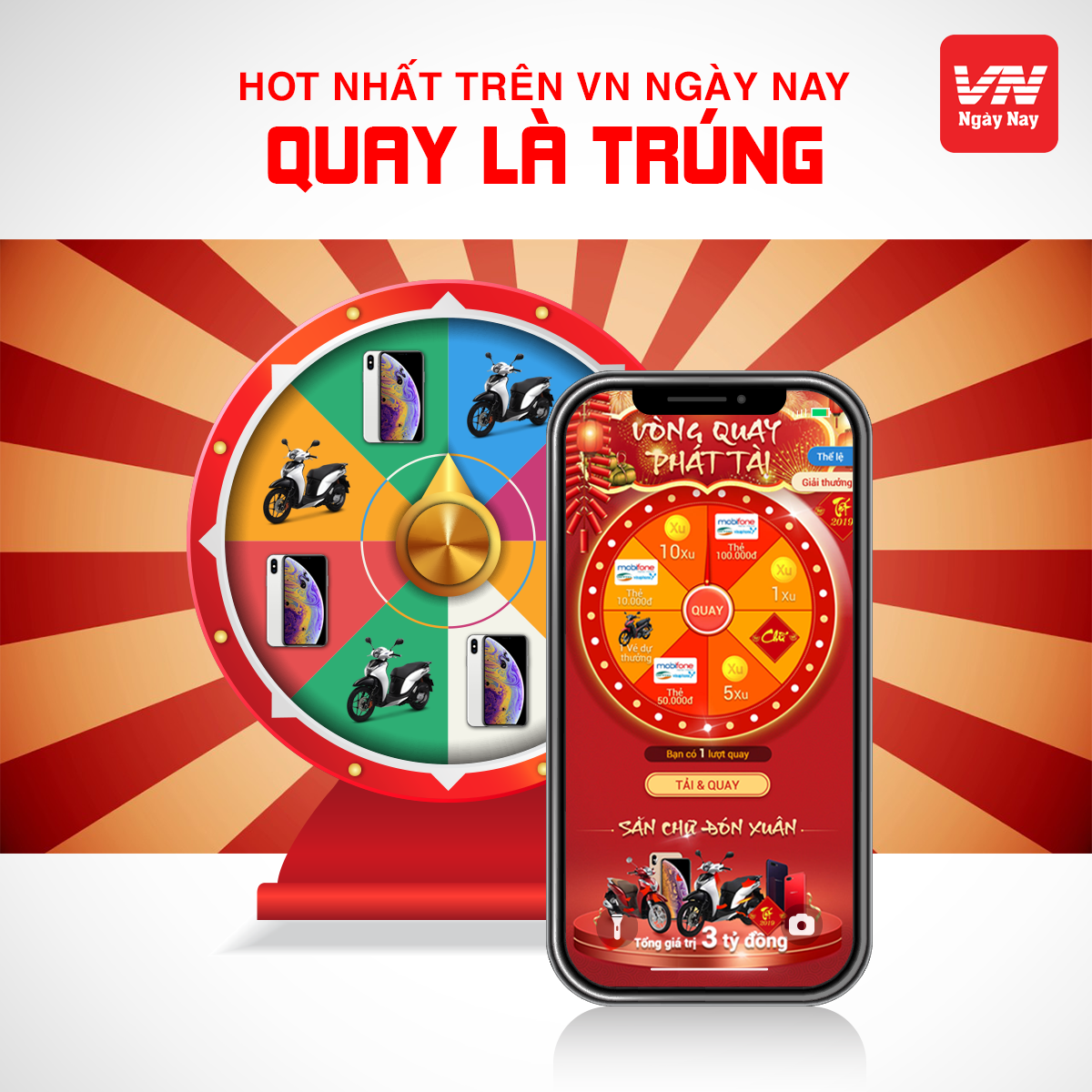 Chương trình Lì Xì May Mắn- Vòng Quay Phát Tài 2019 tổ chức bởi VN Ngày Nay chính thức được bắt đầu từ ngày 30/01/2019 đến hết ngày 13/02/2019. Tất cả những người tham gia sẽ đều nhận được lượt quay Vòng Quay Phát Tài mỗi ngày vào lúc truy cập ứng dụng, với những phần thưởng khác nhau như thẻ cào, xu hoặc một trong sáu chữ cái an lành: Phúc, Lộc, Thọ, Tài, Trí, Đức. Đặc biệt người dùng nào thu thập đủ sáu chữ cái sẽ có cơ hội nhận được giải thưởng là 01 chiếc xe máy SH hoặc 01 chiếc iPhone đời mới nhất.