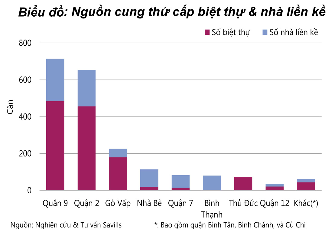 Savills cũng cho rằng, với cơ sở vật chất hạ tầng được quy hoạch tốt, nguồn cung tương lai của Quận 2 và Quận 9 tiếp tục dẫn đầu thị trường nhà liền kề tại TP. Hồ Chí Minh, chiếm khoảng 49% thị phần.