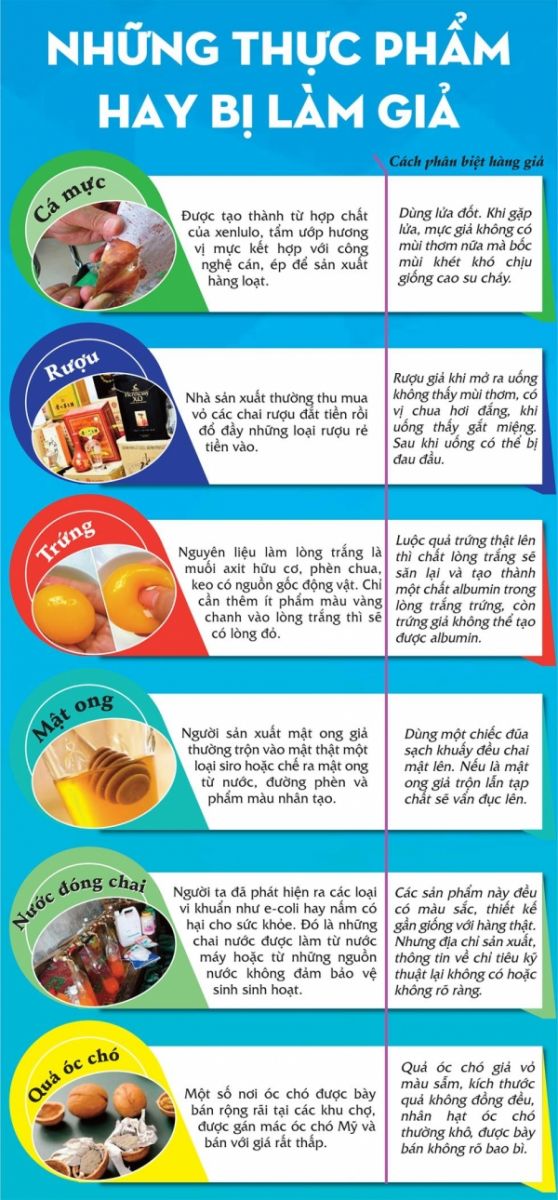 Hiện nay trên thị trường đã xuất hiện thực phẩm bị làm giả một cách tinh vi. Làm thế nào để nhận biết thực phẩm là thật hay giả?