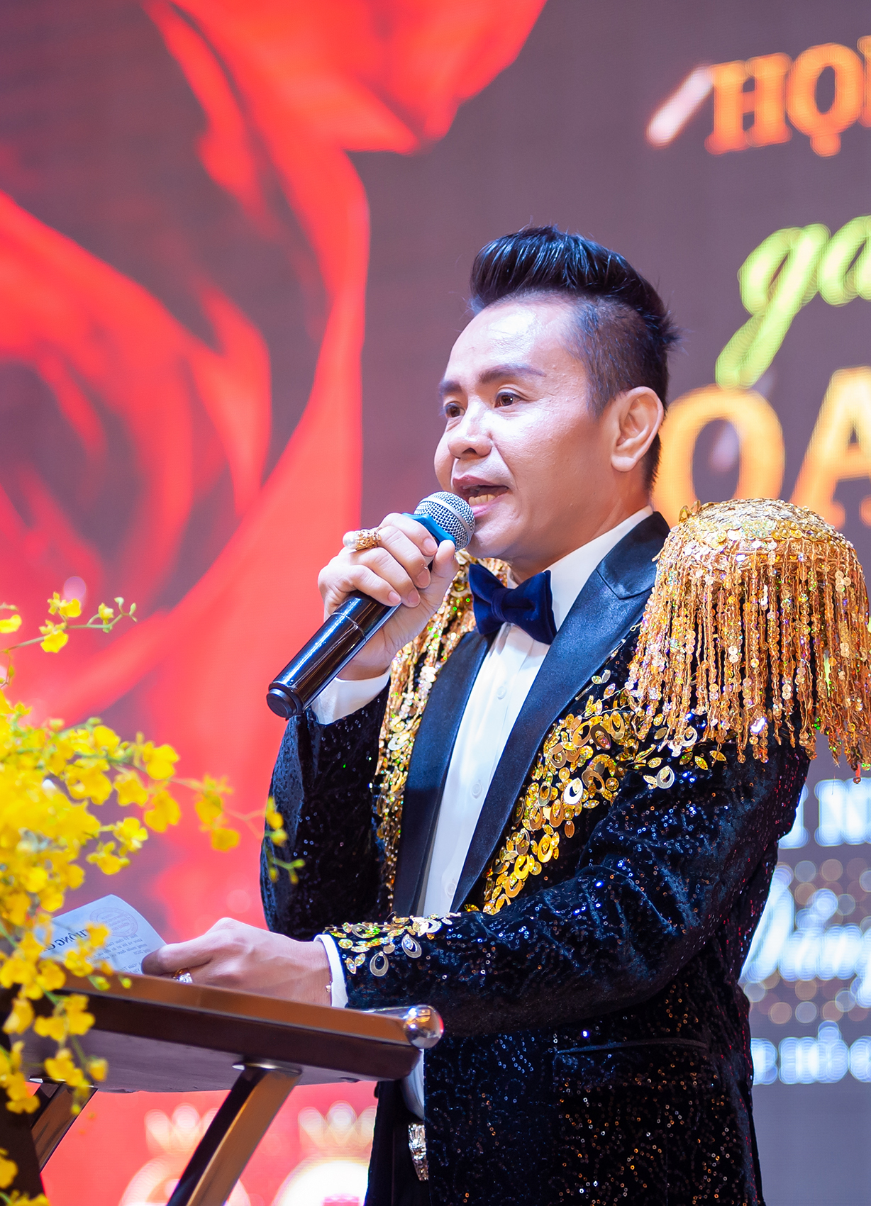 Nam vương Doanh nhân Huy Hoàng phát biểu tại buổi họp báo công bố gala Tôn vinh Doanh nhân Tài năng